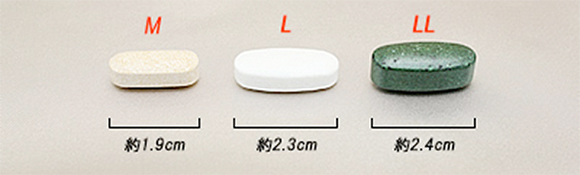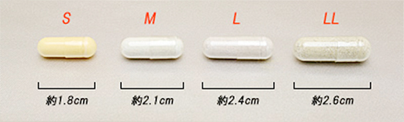 | LL | 長さ約2.8cm以上。含有量の多いサプリメントに多く、少し大きめサイズです。 |