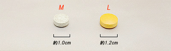 | M | 長さ約2.1cm。国内で販売されているサプリメントに近いサイズです。 |