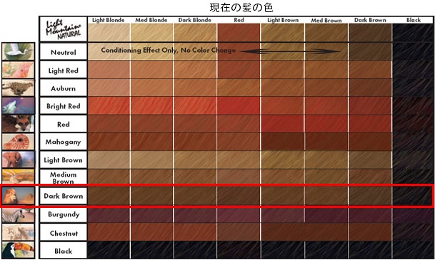 ※元の髪色によって染め上がりの色が異なります。下記を目安にしてください。